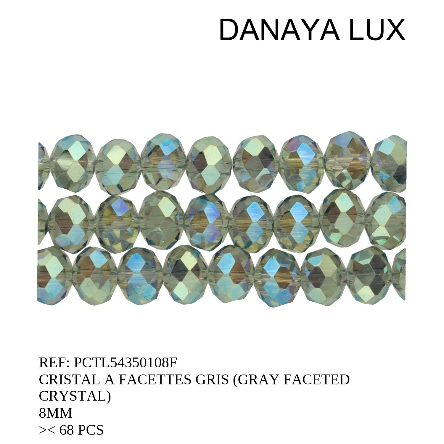 CRISTAL A FACETTES GRIS 8MM